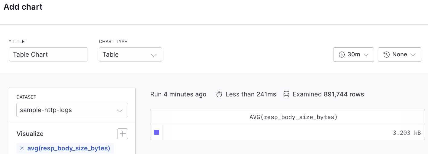 With this option, the table chart type has the capability to display a non-aggregated view of events.